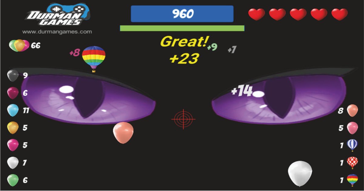 Try to hit the balloons. Good Luck www.durmangames.com