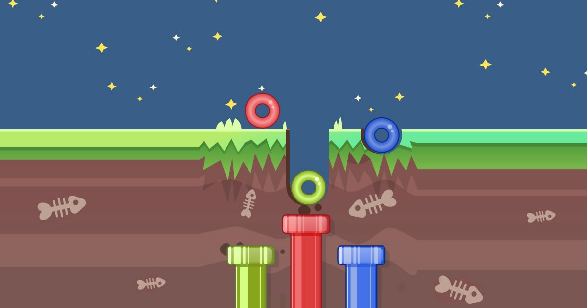 And in this part of the game Route Digger 3 you will work with a digger. Before you on the screen you will see a doughnut of a certain color lying on the surface of the earth. At a certain depth underground, a special well will be visible. You will have to make the doughnut fall into the well. To do this, use your mouse to dig a tunnel underground. A doughnut rolling along it will fall into the well and you will receive a certain amount of points for this.